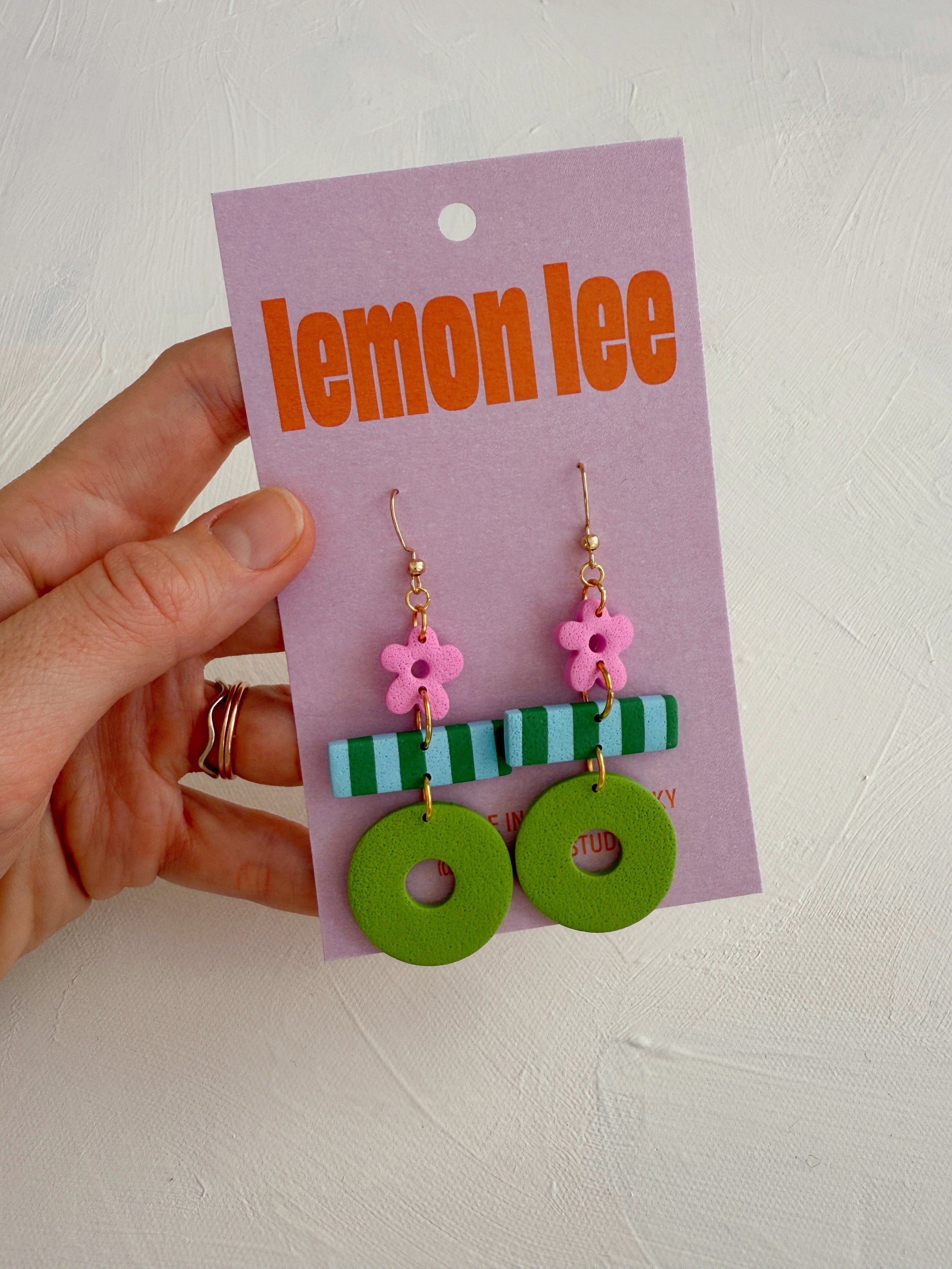 Intricate lightweight statement earrings, handmade from vibrant and durable polymer clay. The perfect accessory to finish any outfit!